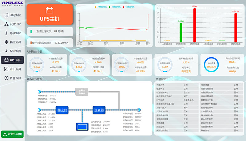 近期我司有幸為本項(xiàng)目設計並施工了機房工程,主(zhǔ)要(yào)設備為1套一拖七單排冷通道(dào):1台30KVA機架(jià)式UPS主機、32節100AH蓄電池及配套電池(chí)櫃、1台精密配電櫃、7台服務器機櫃、2台製冷量12.5KW的機(jī)架(jià)式精密空調,及通道組件。所(suǒ)有設備(bèi)現已供貨施(shī)工完成。